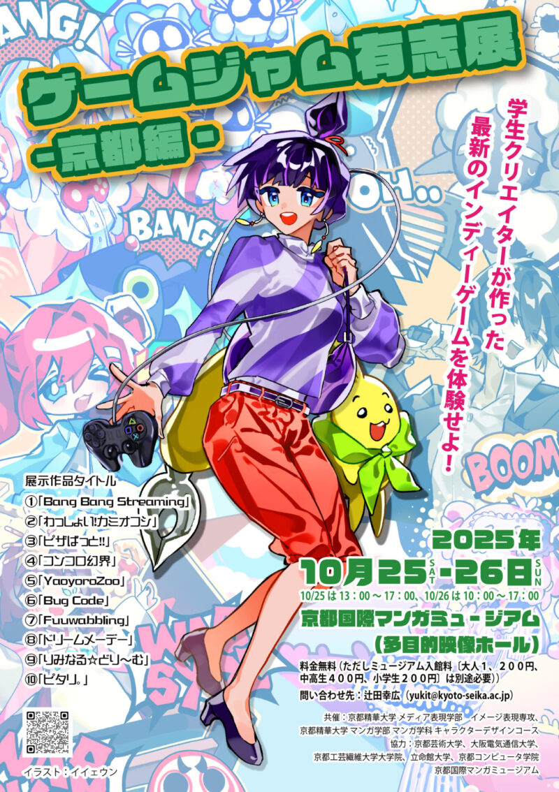 京都精華大学マンガ学部とメディア表現学部の学生らが制作したオリジナルゲームを体験できるイベント「ゲームジャム有志展 –京都編– 」の開催について