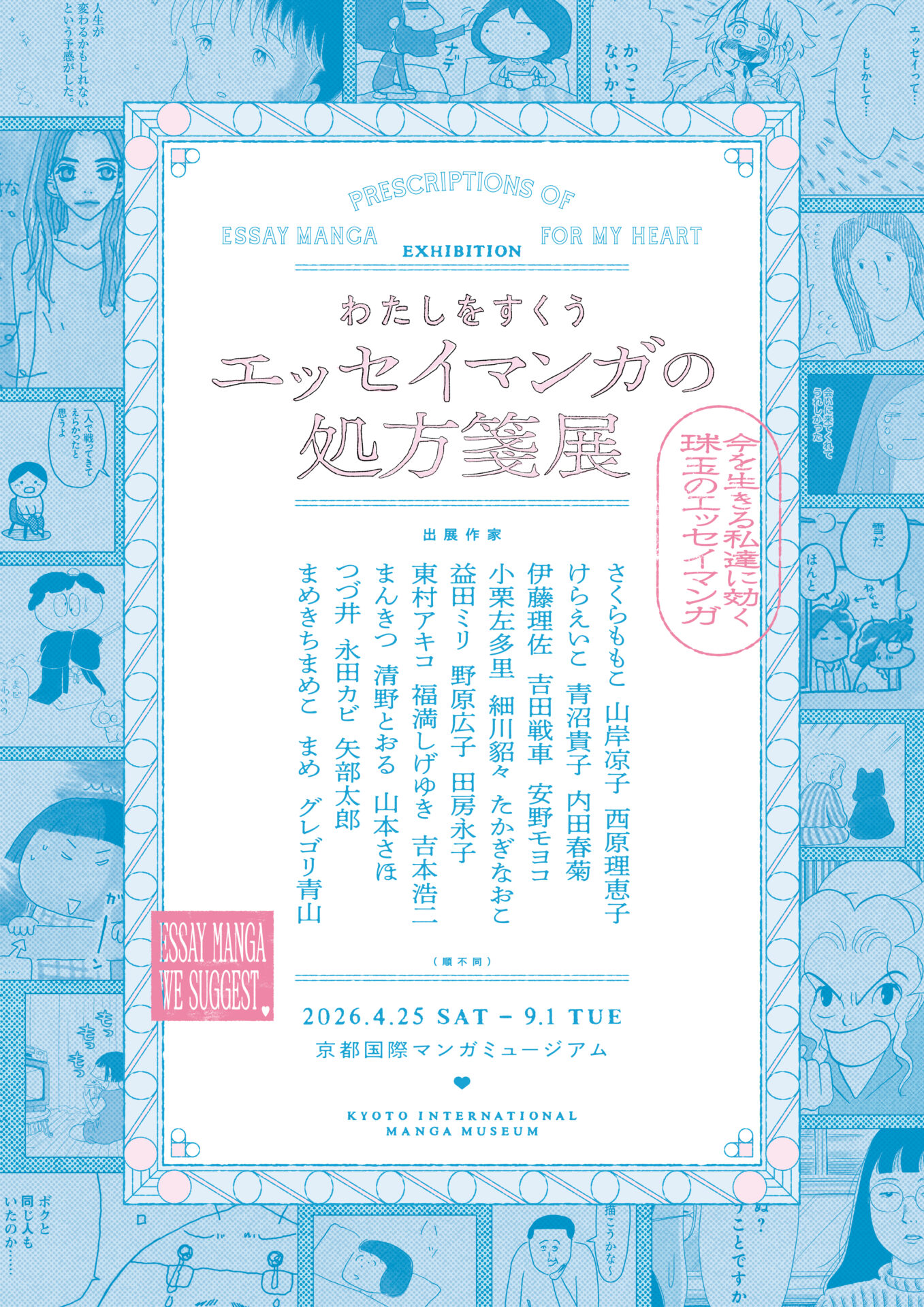 本展では、そんなエッセイマンガの変遷をたどるとともに、今を生きる私たちにあらゆる視点から効く珠玉のエッセイマンガを本展制作チームの主観を交えて紹介します。