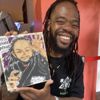 When you visit the Manga Museum, I would be happy if you could smile with my drawing of Nigaoe(Portrait)!